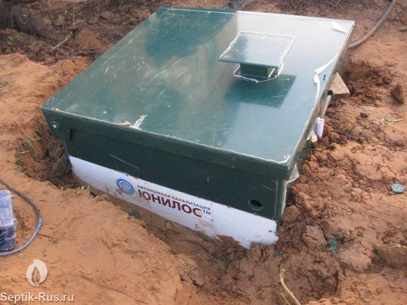 Подводящая труба должна входить в емкость станции на глубине 45 - 85 см, отводящая может быть расположена в 60 см от поверхности грунта. Срок эксплуатации септика – более 50 лет.