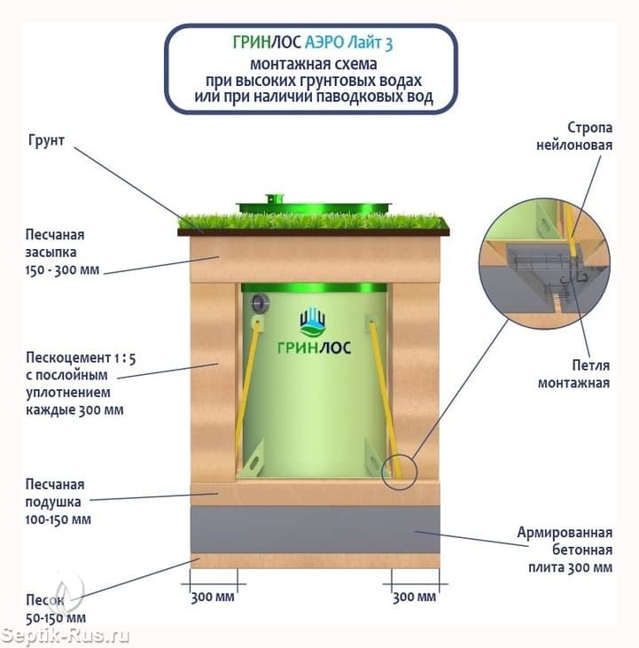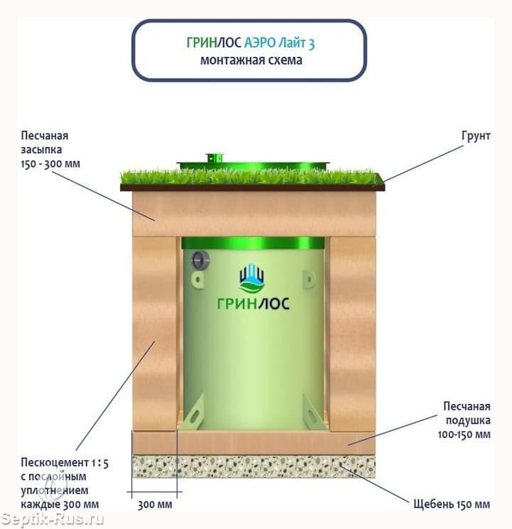 Перед непосредственным монтажом Гринлос Аэро Лайт 3 специалисты осуществляют подготовку котлована. Его размеры определяются конструктивными особенностями выбранной модели оборудования.