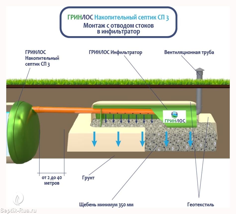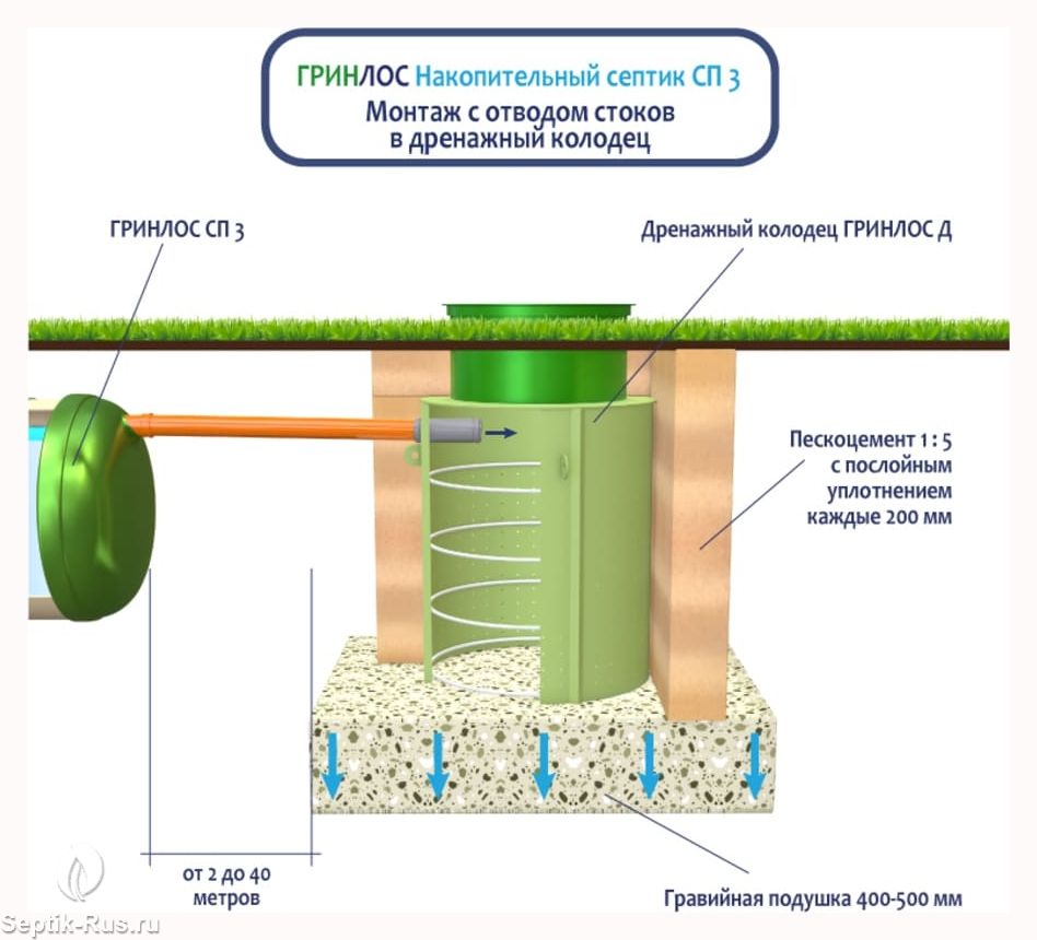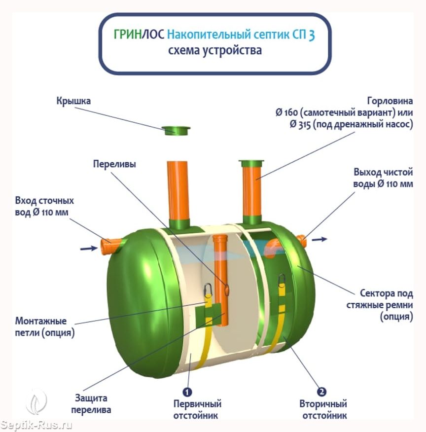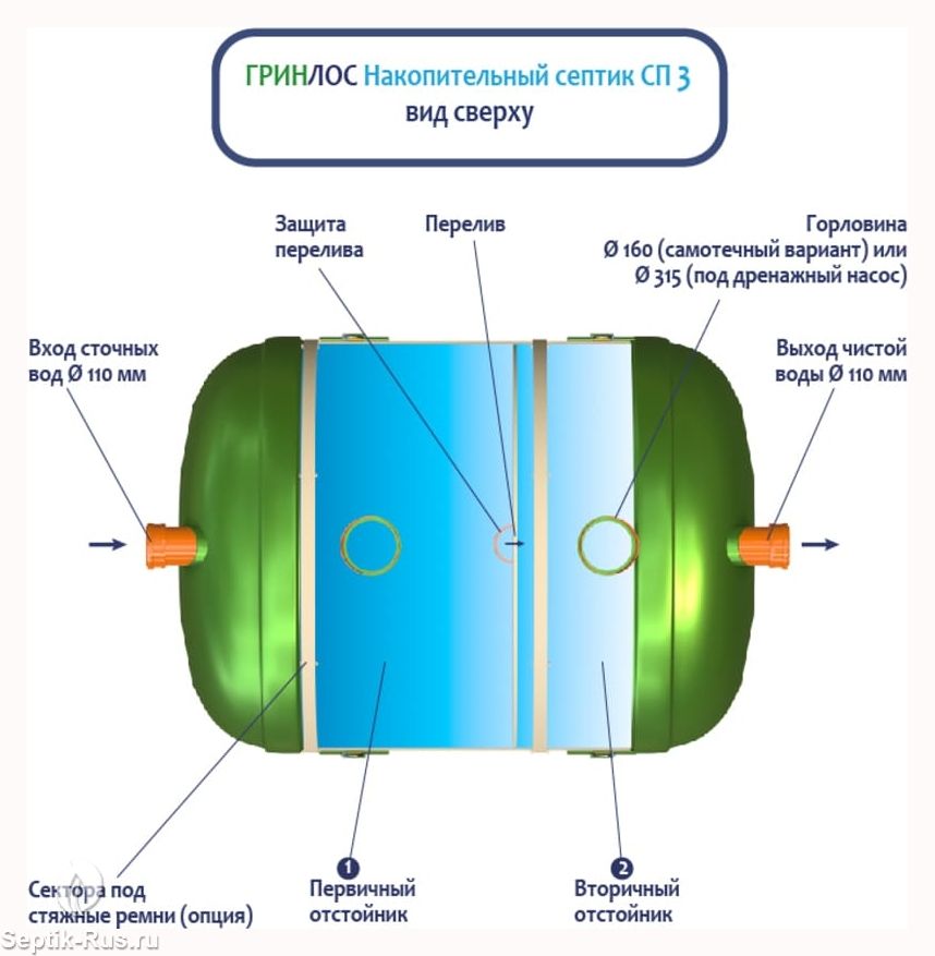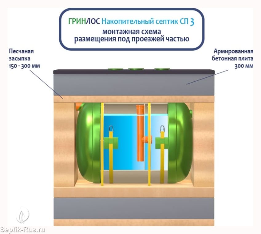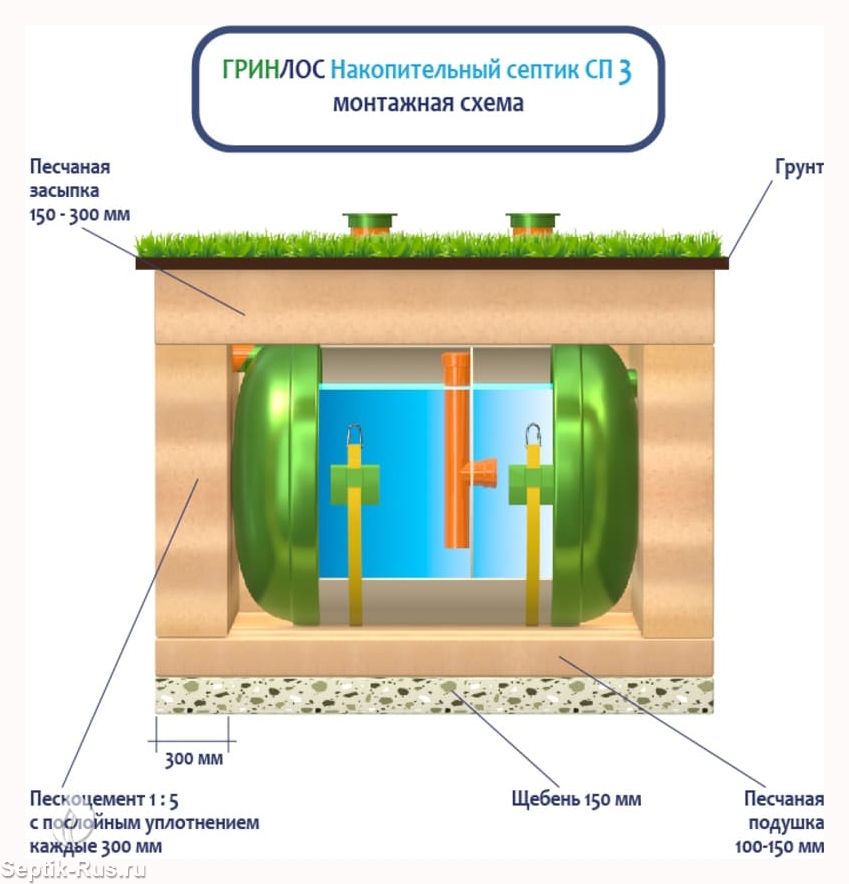 Монтажные схемы Накопительный септик Гринлос СП 3