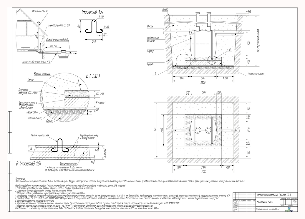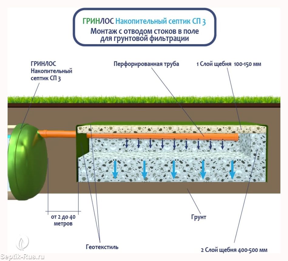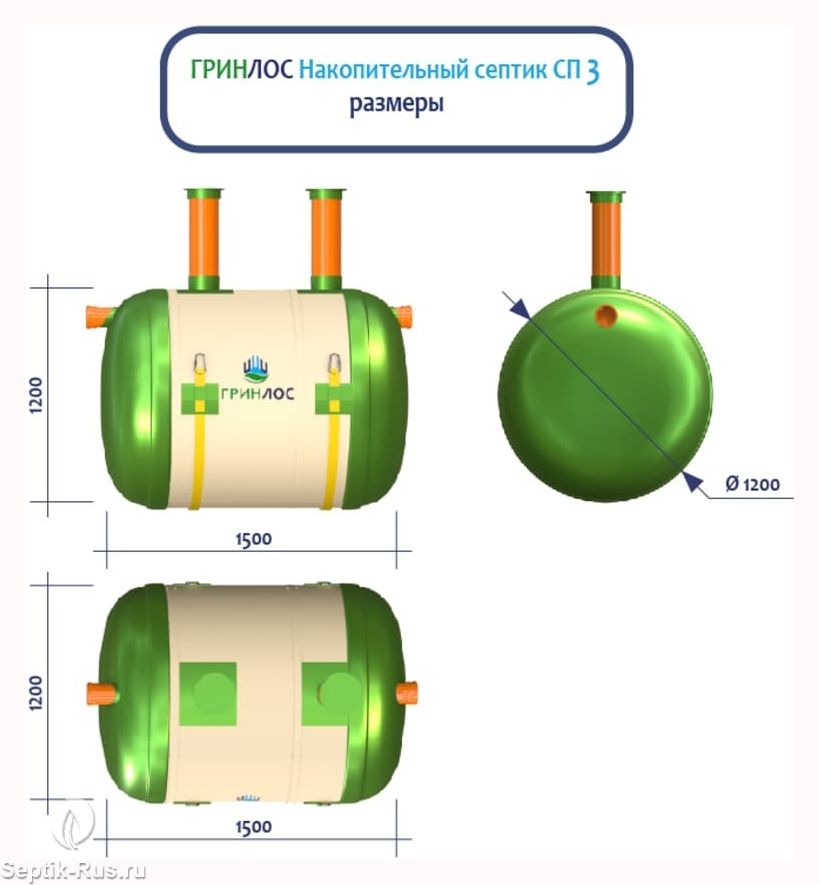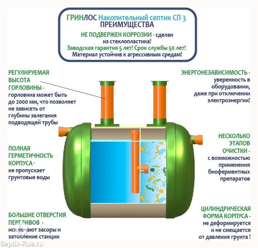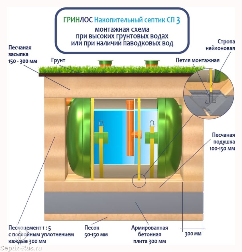 Монтажные схемы Накопительный септик Гринлос СП 3